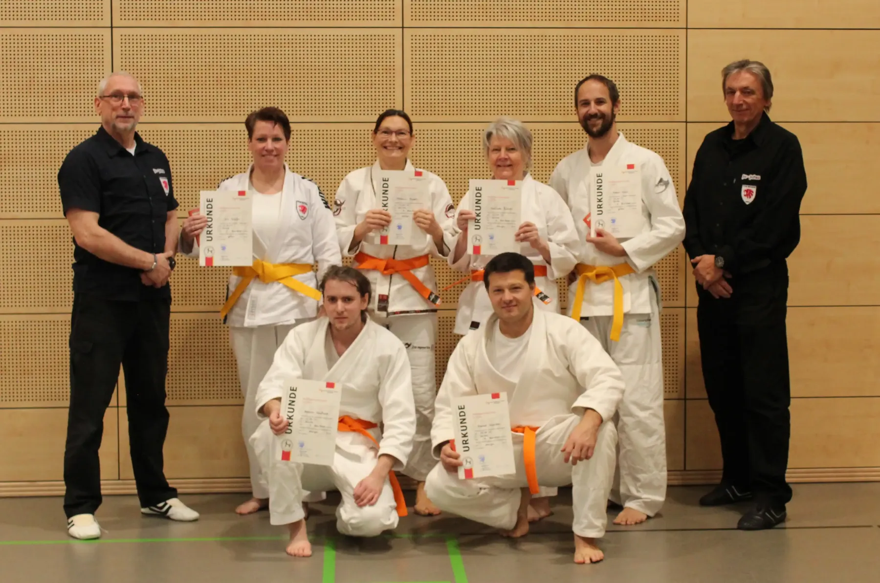 Die Altersspanne der Teilnehmer war besonders bemerkenswert: Die jüngste Teilnehmerin, gerade einmal 10 Jahre alt, erreichte mit hervorragender Leistung ihren 5. Kyu. Auf der anderen Seite brillierte unsere älteste Teilnehmerin, die fast 70 Jahre alt ist, mit dem Erreichen ihres 4. Kyu. Dies zeigt eindrucksvoll, dass Ju-Jutsu für jedes Alter geeignet ist.
