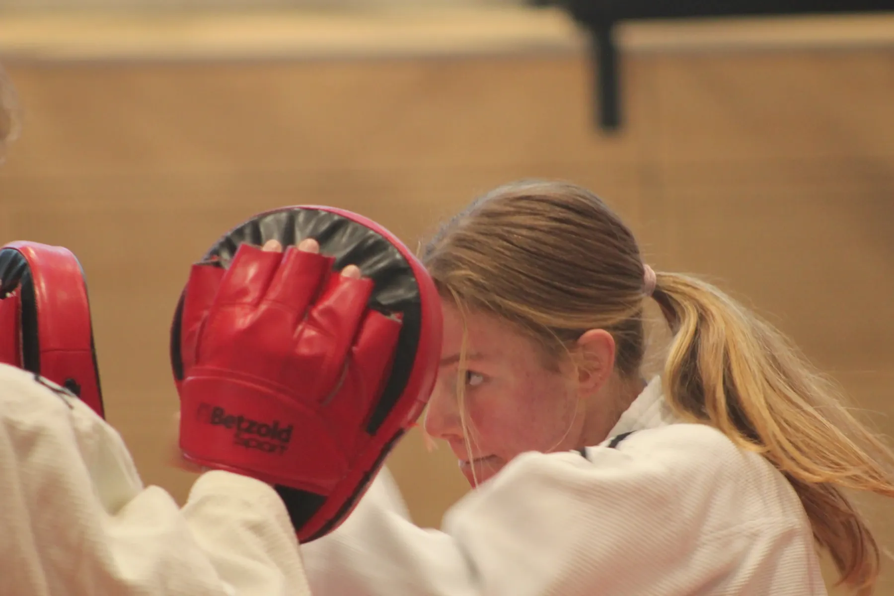 Nach einer kurzen Pause ging es mit den Erwachsenen weiter. Bei dieser Prüfung wurden ausschließlich die Grade 5 und 4 Kyu geprüft. Die Teilnehmer starteten mit der „Fallschule“ und arbeiteten dann nach und nach alle anderen Prüfungsfächer ab, darunter Bodentechniken, Atemi-Techniken, Hebeltechniken sowie Wurftechniken. Alle Prüflinge meisterten diese Herausforderungen mit Bravour. Zum krönenden Abschluss durften sie sich noch einmal an den Pratzen und Schlagpolstern beweisen und richtig Gas geben.