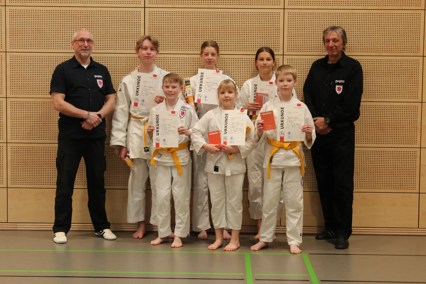 Nach einer weiteren Auswertung versammelten sich die Teilnehmer zur feierlichen Übergabe der neuen Gürtel. Besonders erfreulich war die große Leistungsbereitschaft aller Prüflinge, die sich intensiv auf diese Prüfung vorbereitet hatten.